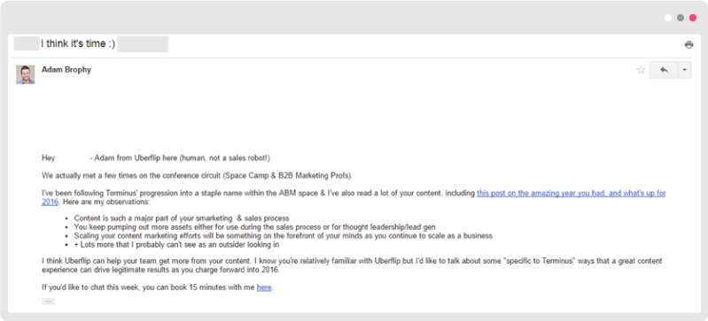 They essentially got me to “soft agree” to their pitch over Slack. That meant that when they emailed me, I was ready, and happy, to pay attention to what they had to say.