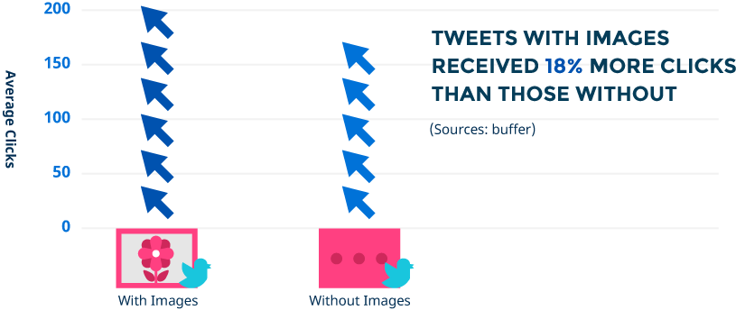 Research by Buffer found that tweets with images saw clicks increase by 18% and retweets by 150%.