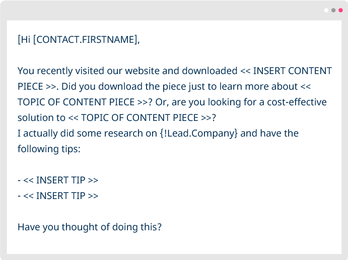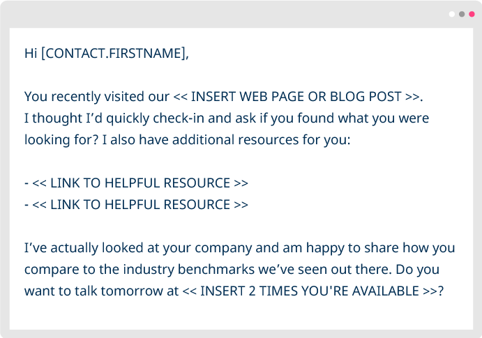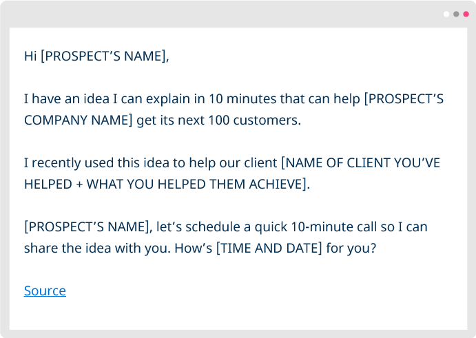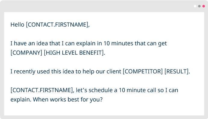 You’re busy. You don’t have time to handcraft a unique email for each recipient. I get that. But do you know what? Your recipients are busy, too. They don’t want to read detailed sales pitches from strangers. They simply want to know: